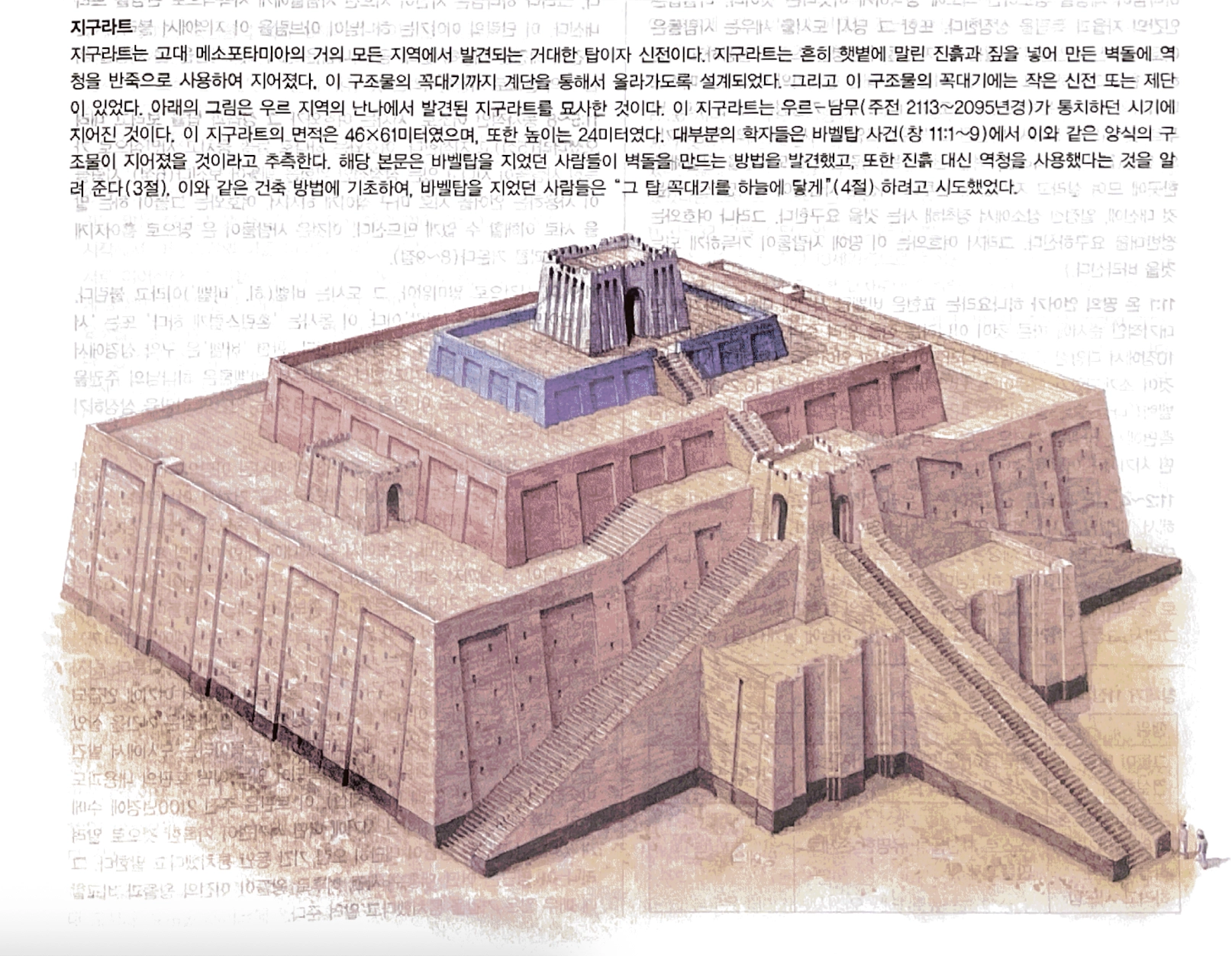 아래 그림은 대부분의 학자들이 바벨탑의 모형으로 제시하고 있는 모습이다.