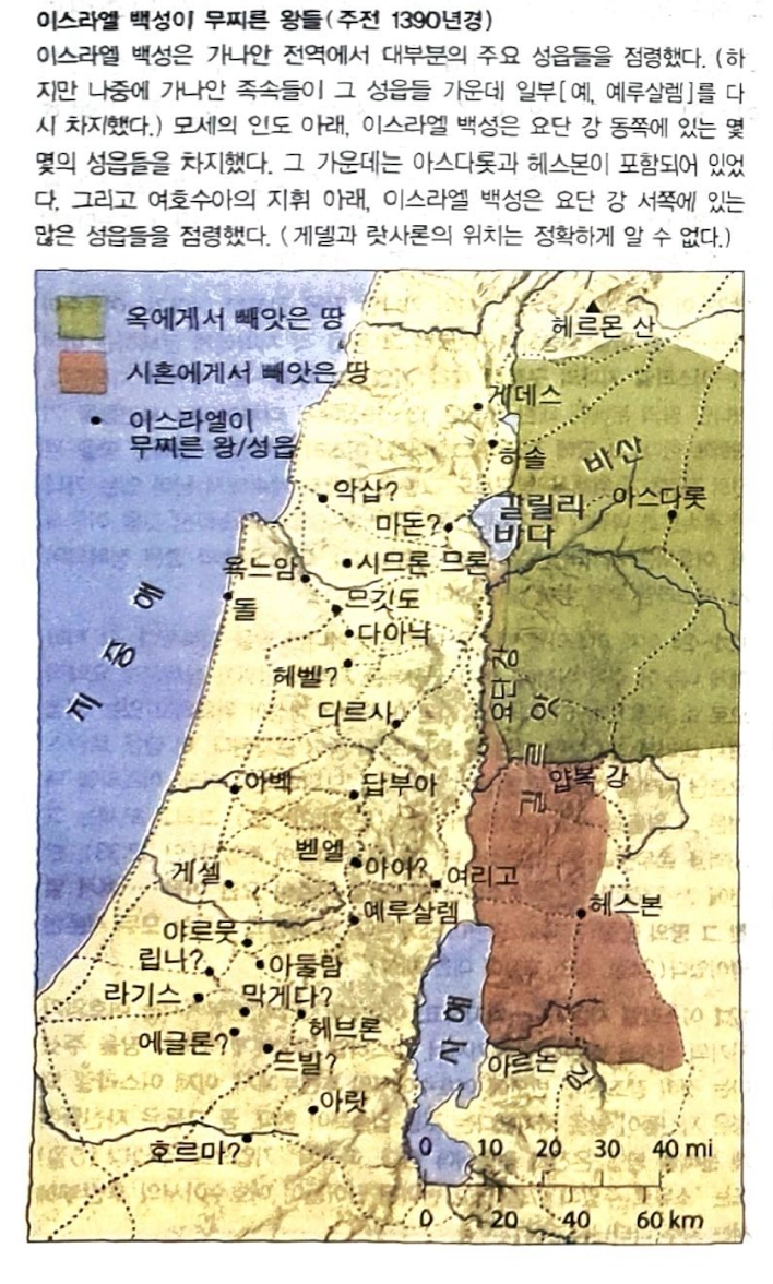 여호수아가 모세의 후계자로 지도자로 세워진 후 요단강을 건너 길갈에서 할례를 행하고 유월절을 지킨후 여리고 성을 함락시킵니다. 그때 부터 시작된 정복전쟁은 12장에서 마칩니다.